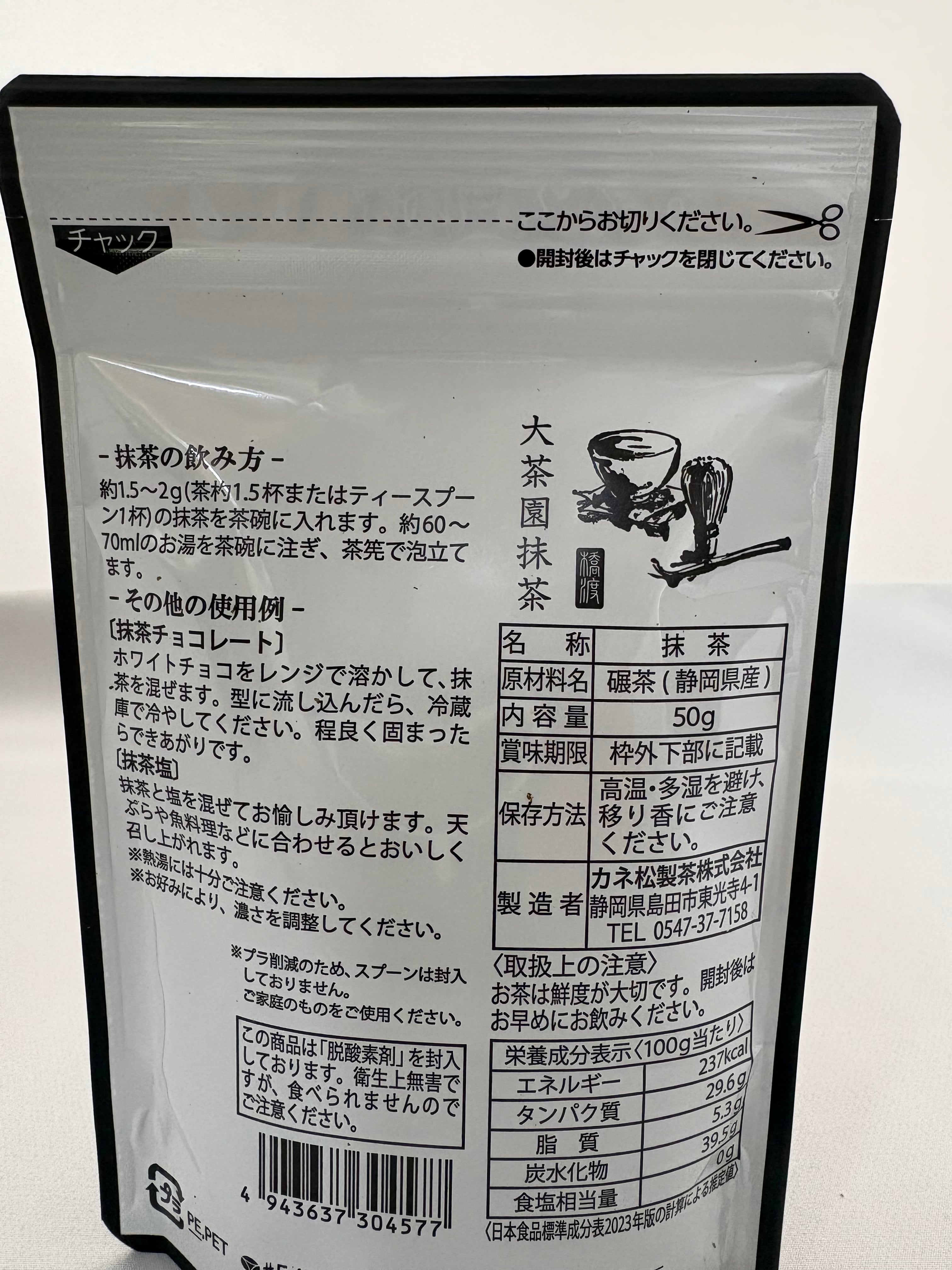 商品詳細 ≪大茶園抹茶≫香り高く濃厚な風味が楽しめる粉末抹茶です!厳選された静岡産の国産抹茶を使用し、まろやかで深い味わいが特徴です。料理やスイーツの材料としてはもちろん、ホットな抹茶ラテやアイス抹茶など、様々なお楽しみ方ができます。お茶好きの方はもちろん、抹茶を始めてみたい方にもぴったりの一品です。